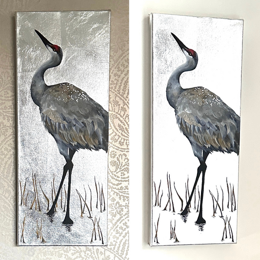 Japanese Crane in Silver Waters | Original Silver Leaf Artwork