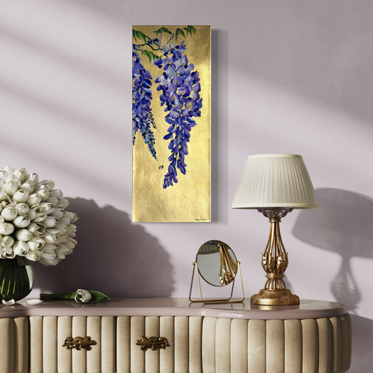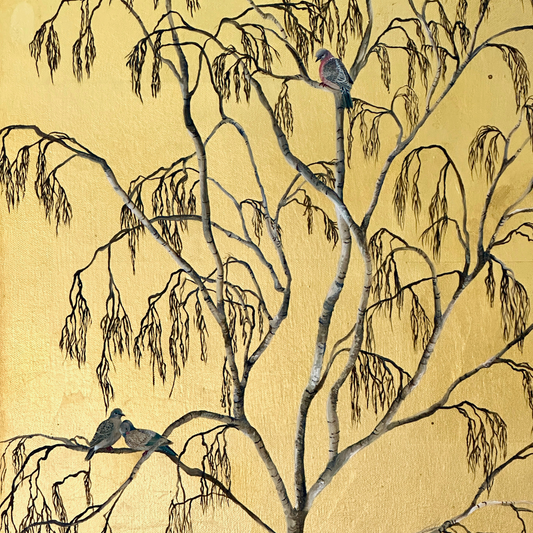 Feathered Fantasia | Original Tropical Bird Painting on Gold Leaf Canvas