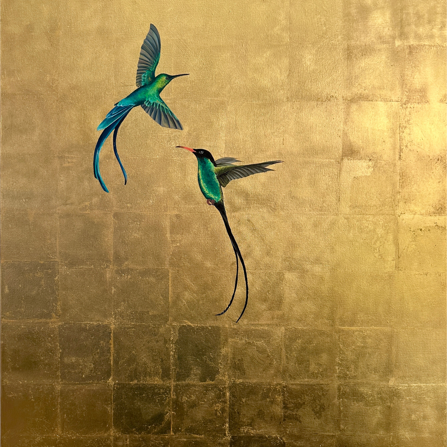 Hummingbirds on 23k Gold Leaf (70 x 70cm)
